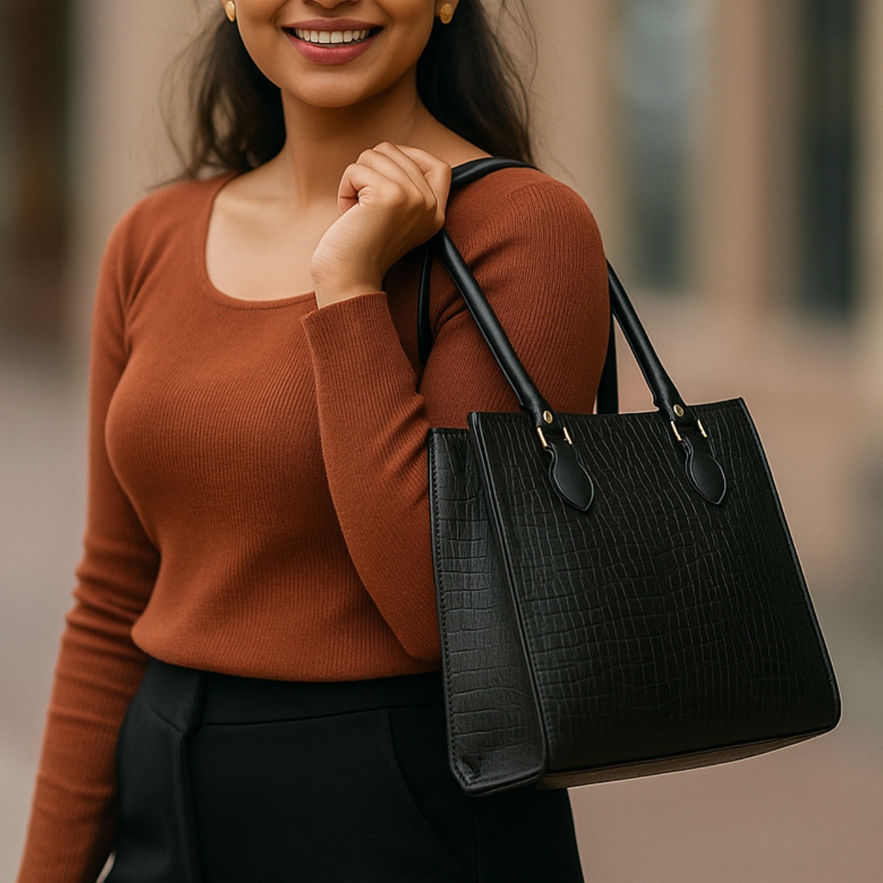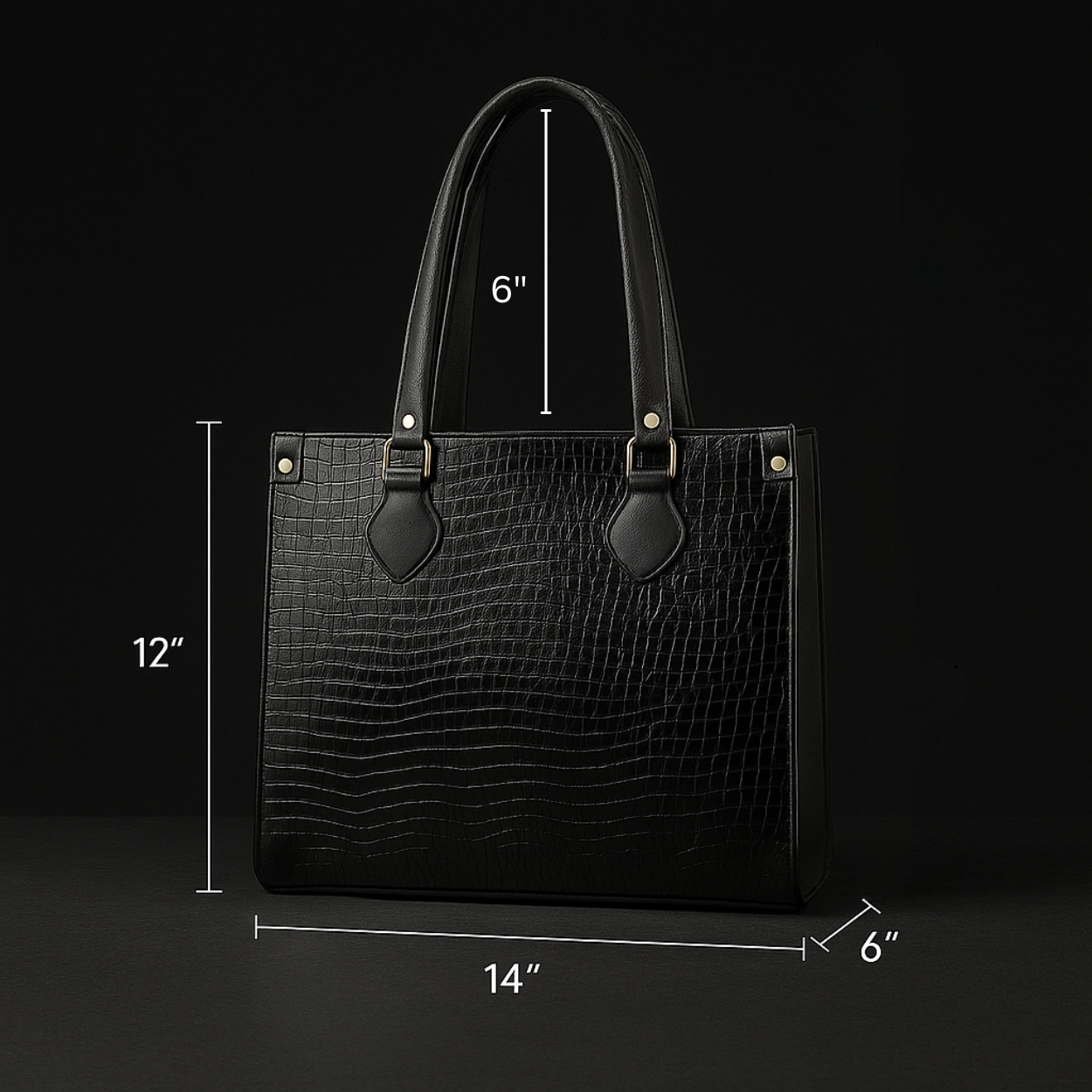 Xumify Handbag Luxury Crocodile Pattern Leather Tote Handbag, Black